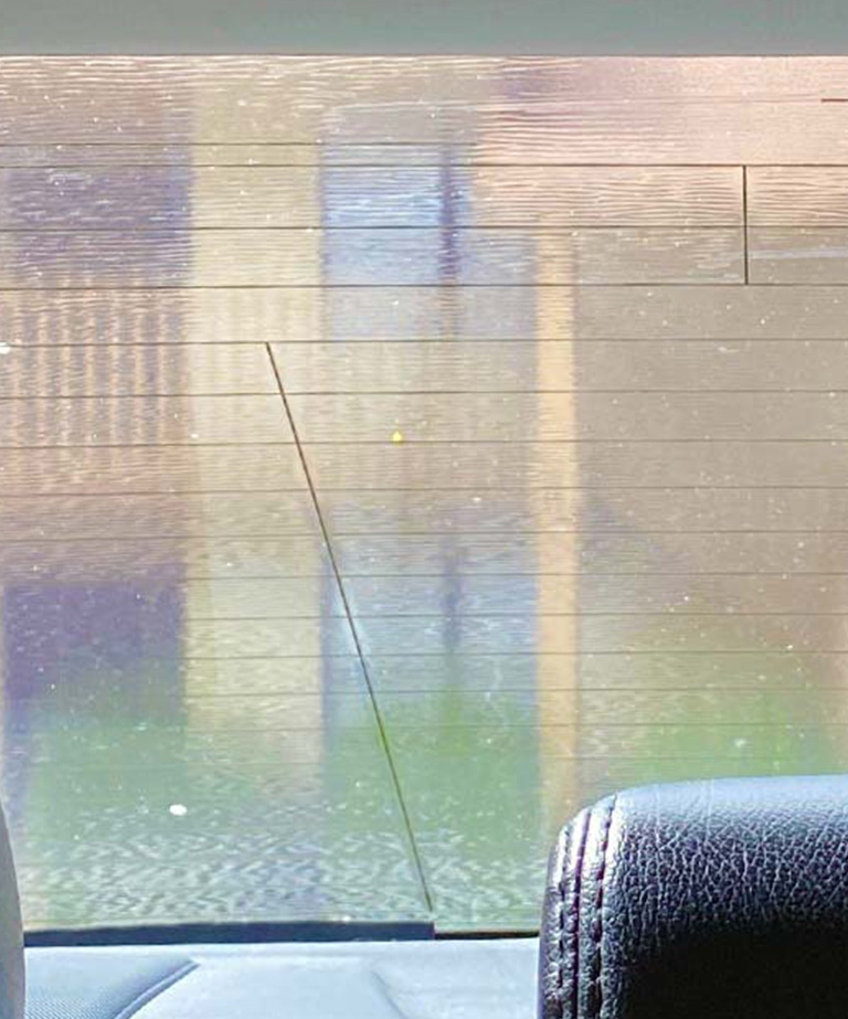 All or part of the tint can begin to peel or crack due to low-quality film, improper installation, faulty cleaning techniques, or exposure to wear and tear that degrades the film over time.